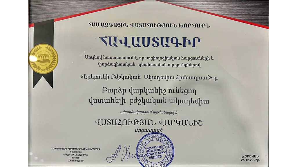 Agreement of Cooperation Between MCC and Erebuni Medical Academy Foundation